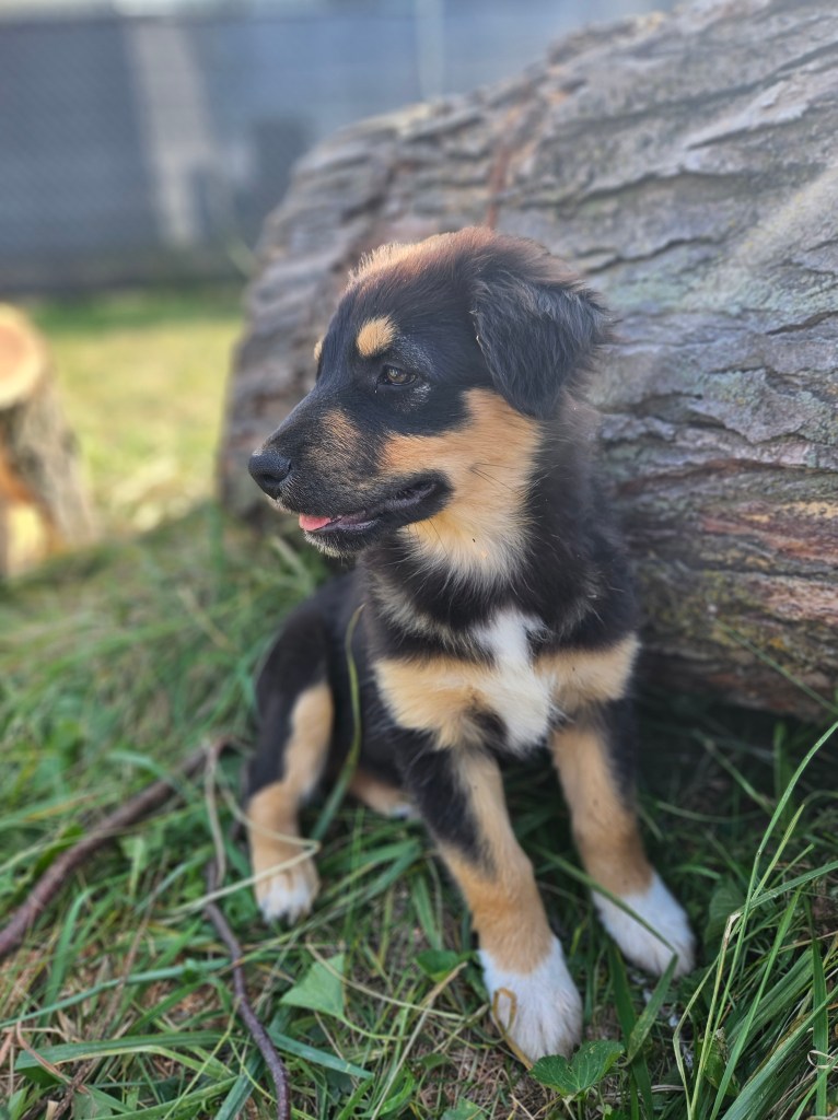 This sweet puppy loves life, and she loves people. She has a great personality. I think her markings are beautiful. Looking for a loving family to love her, and she will definitely give it back.