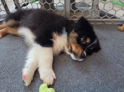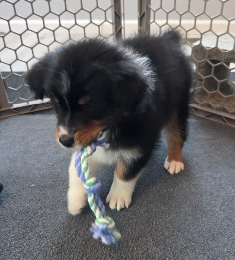 Jericho is a little smaller than Samson, but he still knows how to play. He doesn’t let size deter him. He takes a good bath, eats well, and enjoys time with people. I think he is great! He has had his first set of vaccinations and he had a good report for his well-puppy check up.