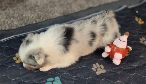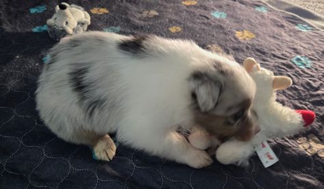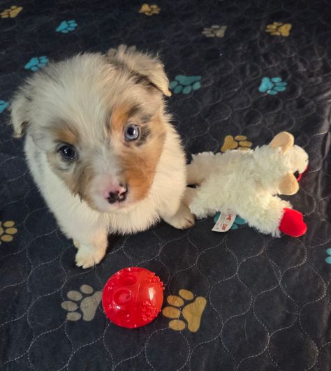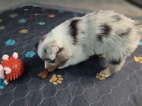 This puppy is smaller than the others. He is more happy go lucky when it comes to eating. He was playing with the toys with serious energy though.